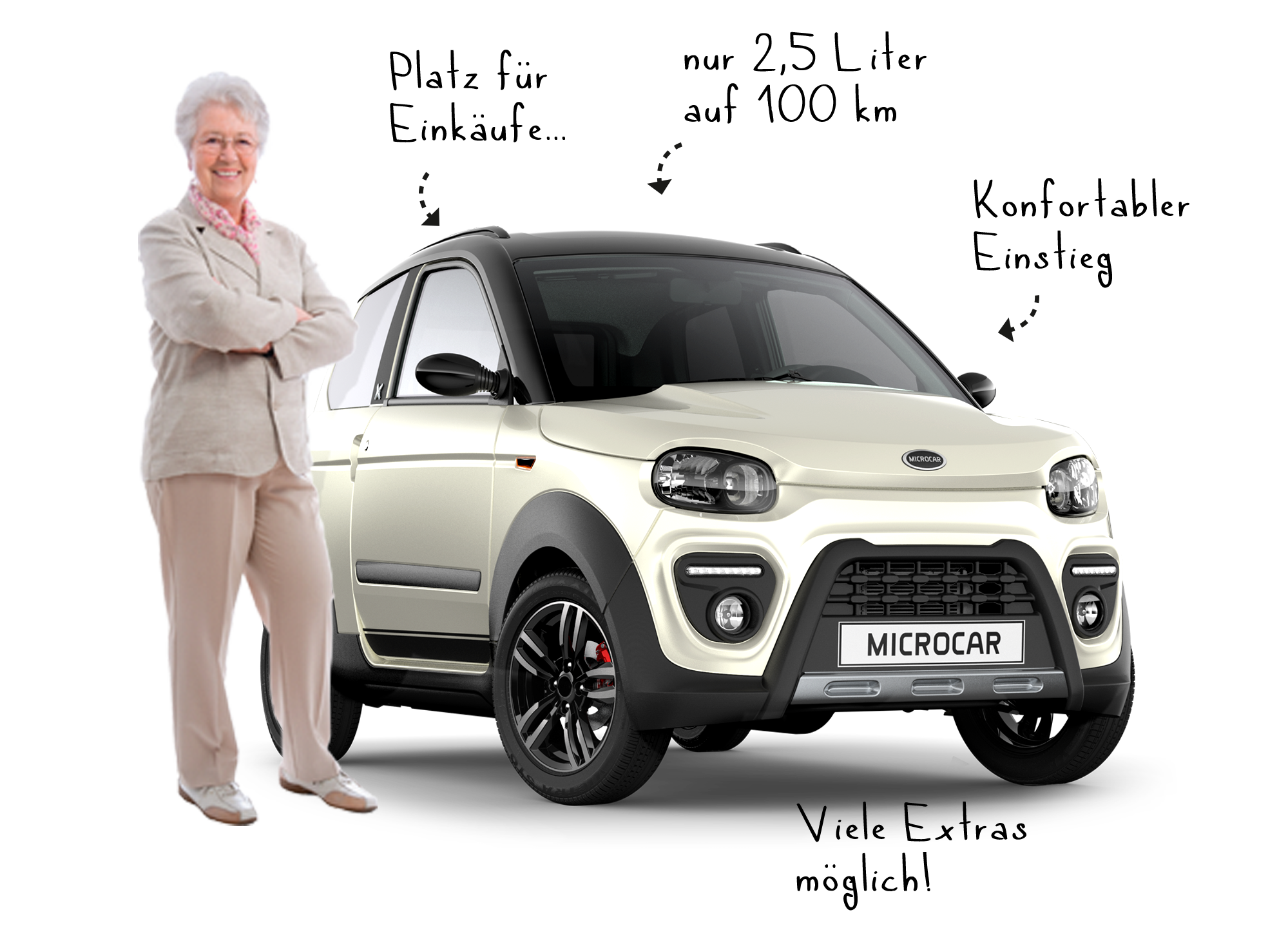 Alle Modelle von Ligier Microcar können ab 15* Jahren gefahren werden. Damit kann auch mal Ihre Enkelin oder Enkel die Einkäufe erledigen.