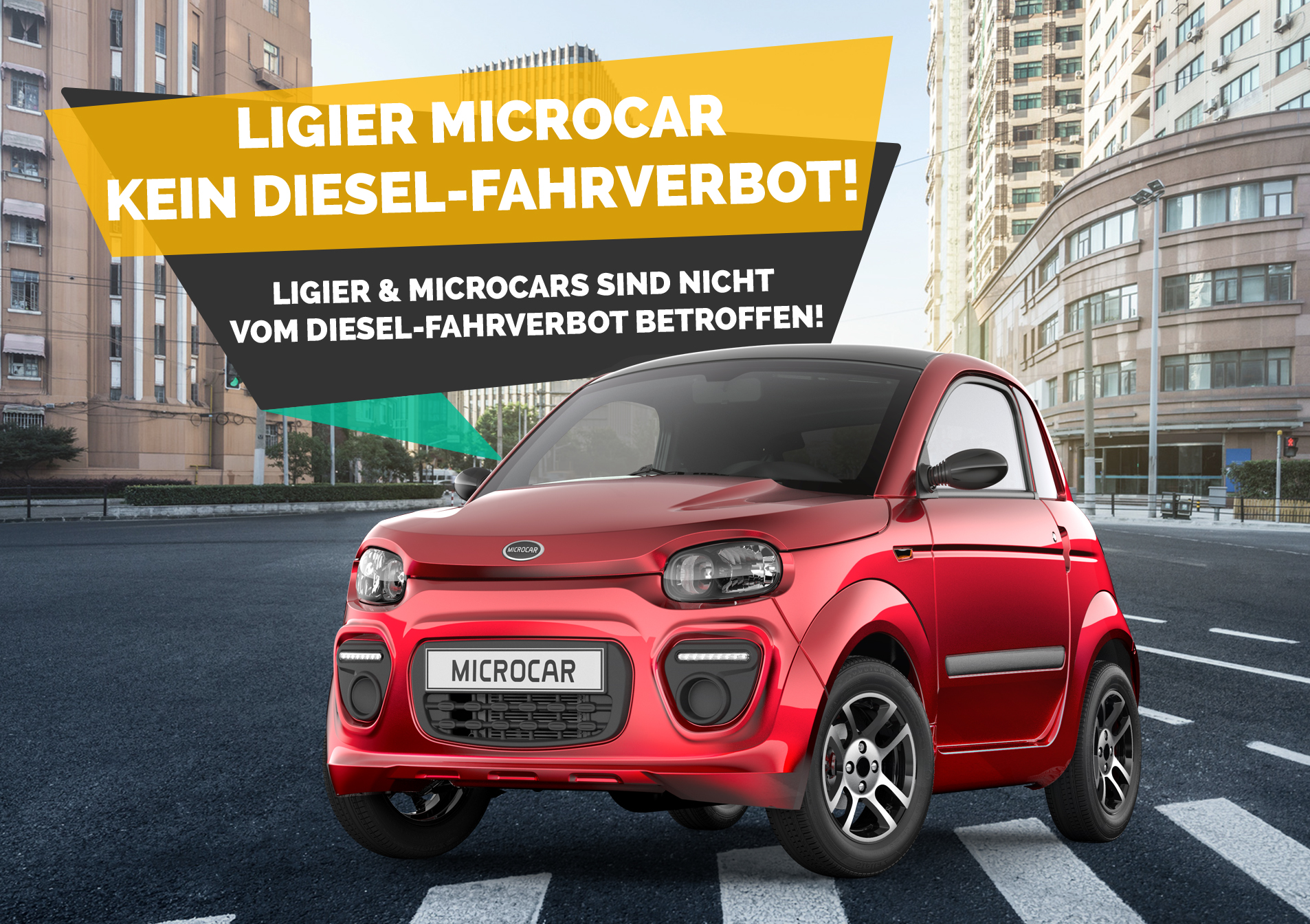 Da die Modelle von LIGIER und MICROCAR offiziell nicht als Autos gelten, sondern vom Gesetzgeber als Leichtfahrzeuge kategorisiert werden, fallen sie nicht unter mögliche Diesel-Fahrverbote. Fahrverbote würden nur für Autos in Kraft treten.